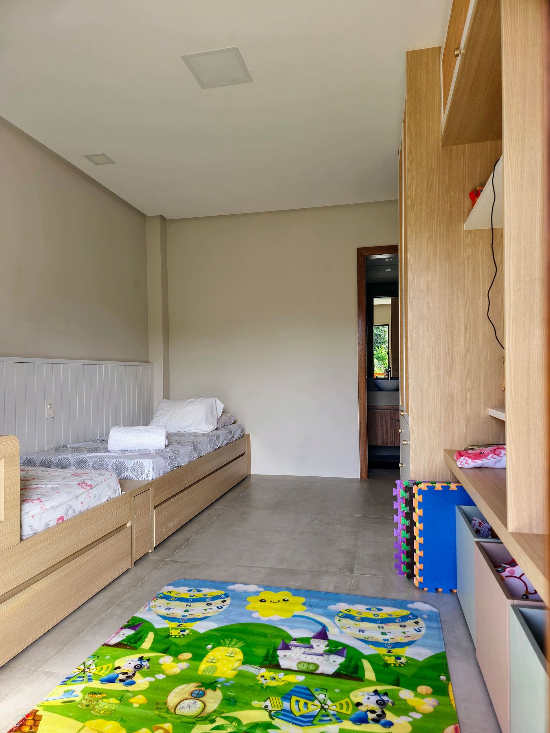 Con 4 suites bien planificadas, la casa puede alojar cómodamente hasta 08 personas. Tres de las suites están equipadas con camas dobles, proporcionando un espacio acogedor e íntimo, mientras que la cuarta suite es perfecta para niños, con camas individuales y opciones adicionales, totalizando 4 camas individuales. Cada detalle ha sido pensado para garantizar el máximo confort y privacidad.
